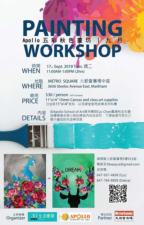 Registration: To register, please come to Metro Square Mall Suite 313 or call 647.937.4858(Cyc) / 647.784.8858(Debra)